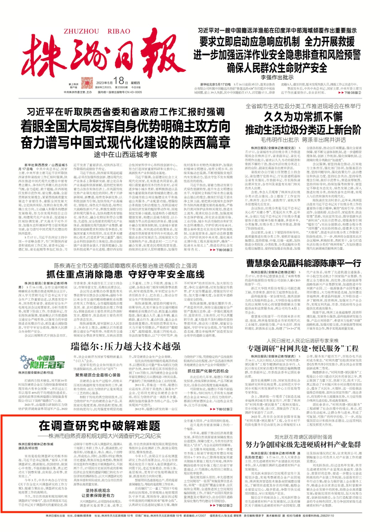 《株洲日报》头版报道市资规局《在调查研究中破解难题——株洲市自然资源和规划局大兴调查研究之风纪实》工作经验