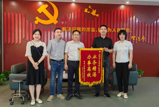“业务精湛 办事高效”锦旗上醒目的八个大字与市自然资源和规划局首问责任制窗口红墙上“解决问题的宗旨,就是为人民服务”的标语交相辉映。7月7日,看着锦旗和素未谋面的一行人,局总规划师张金望有些诧异。经过一番交谈才知道,送来锦旗的是湖南山河科技股份有限公司。