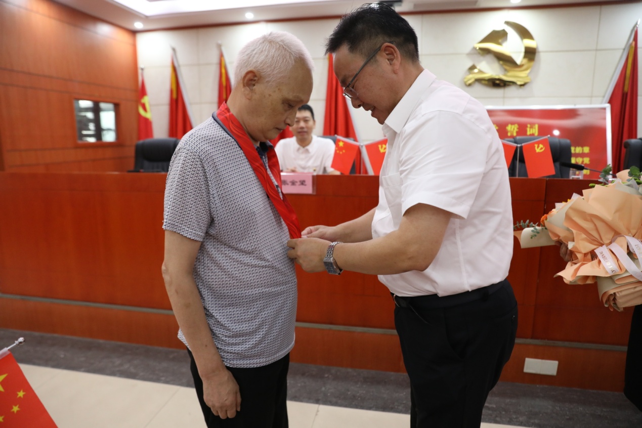 会上,陈佳同志代表局直属机关党委做党建工作报告;局党组成员、副局长曹阳宣读"光荣在党50年"名单,局党组书记、局长徐业伟为50年党龄的老党员代表颁发纪念章并献花。