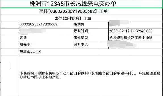 9月19日,株洲市不动产登记中心接到了一个“特殊”的“12345”市长热线工作单,一名市民专门致电“12345”市长热线,拨打市长热线不是为了反映问题,而是要求表扬不动产登记窗口工作人员。