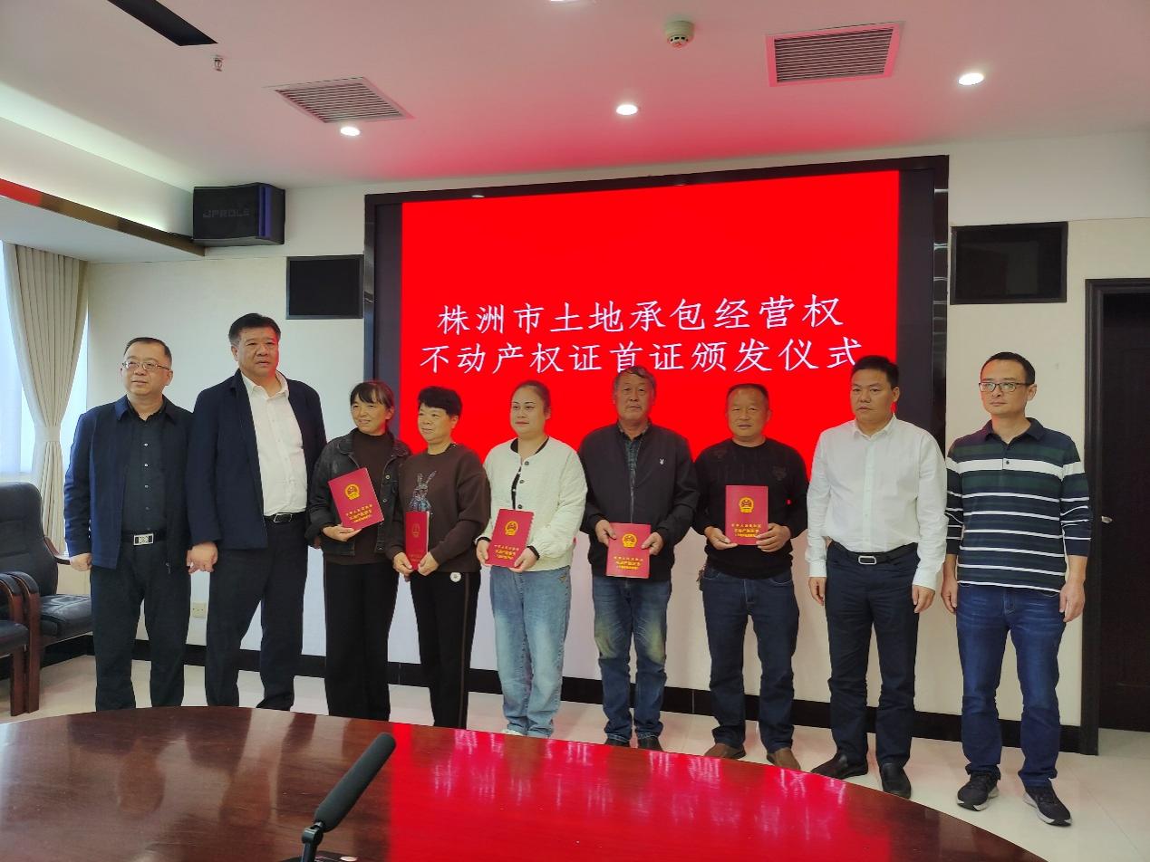 11月7日上午,株洲市本级首本农村土地承包经营权不动产权证书颁发仪式在芦淞区政府举行,标志着株洲市土地承包经营权、土地经营权正式纳入不动产统一登记。