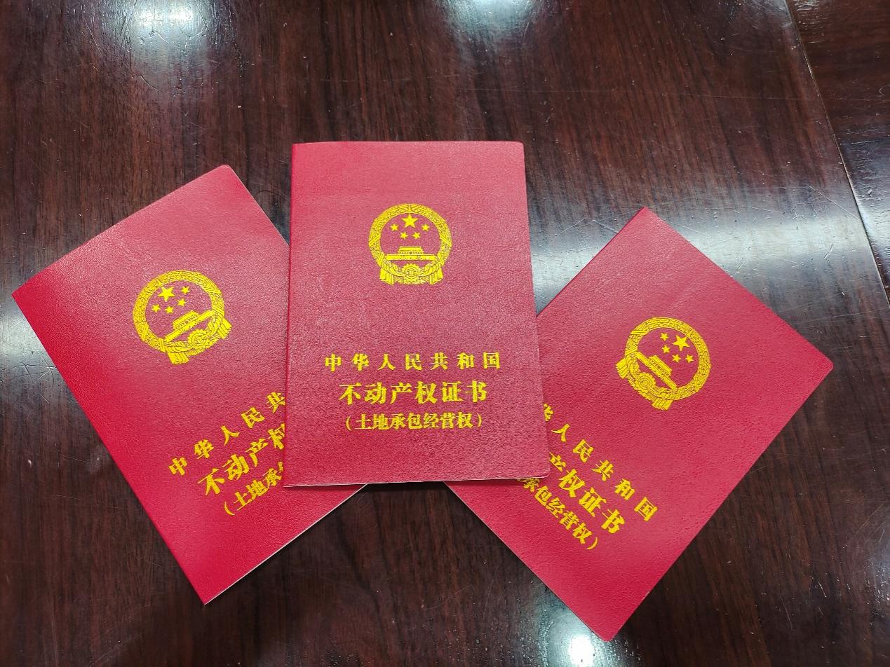 白关镇白关村胡先生等5位承包经营户代表拿到了崭新的土地承包经营权不动产权证书。新的农村土地承包经营权不动产权证书上,清晰记录了发包方和承包方名称、承包方式、合同代码、承包期限、不动产单元号、坐落面积等详细信息,相当于承包地的"身份证",既进一步保障了农户的合法权益,又让农户吃上了长效"定心丸",使"耕者有其田"得以充分展现。