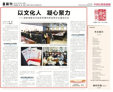 2月20日,《中国自然资源报》刊发《以文化人 凝心聚力——湖南省株洲市自然资源和规划局文化建设纪实》,推介我局文化建设工作经验,一起来看原文。