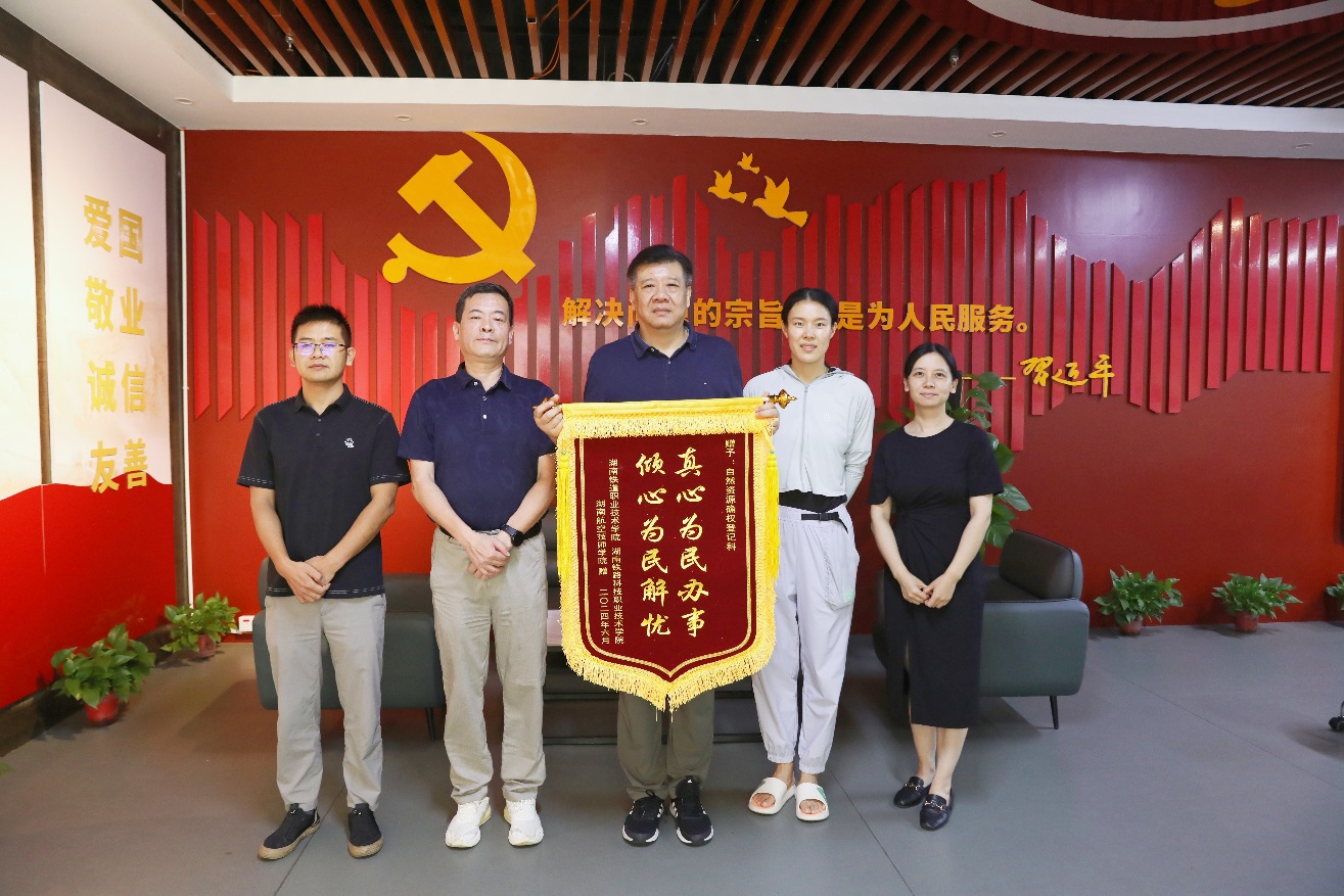 7月5日,九郎山职业教育科创城相关负责人来到市资规局,赠送了一面绣有"真心为民办事 倾心为民解忧"字样的锦旗,以表达对市资规局在确权登记工作中高效服务的深深感激。随着九郎山职业教育科创城确权登记工作取得的显著进展,该重点项目的建设与发展迎来了新的里程碑。
