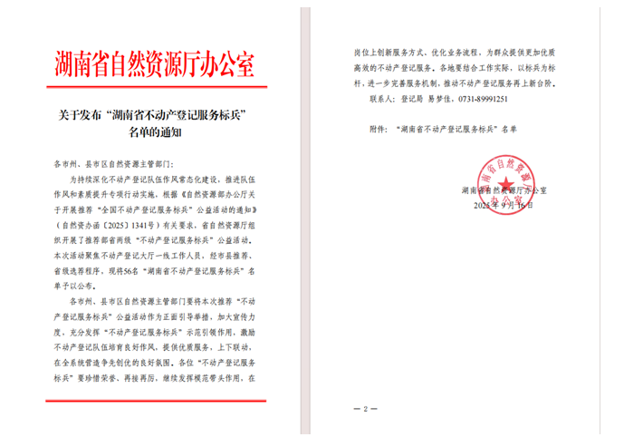 次评选活动由湖南省自然资源厅组织,旨在深化不动产登记队伍作风常态化建设,激励一线工作人员创新服务、优化流程。经严格推荐和省级评选,全省共56名同志获此称号。刘智艳、李琼和刘武军同志作为株洲市不动产登记中心的优秀代表,长期扎根服务一线,以群众需求为核心,用实际行动诠释了不动产登记工作者的责任与担当。