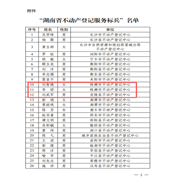 省级标兵!刘智艳、李琼、刘武军获“湖南省不动产登记服务标兵”称号