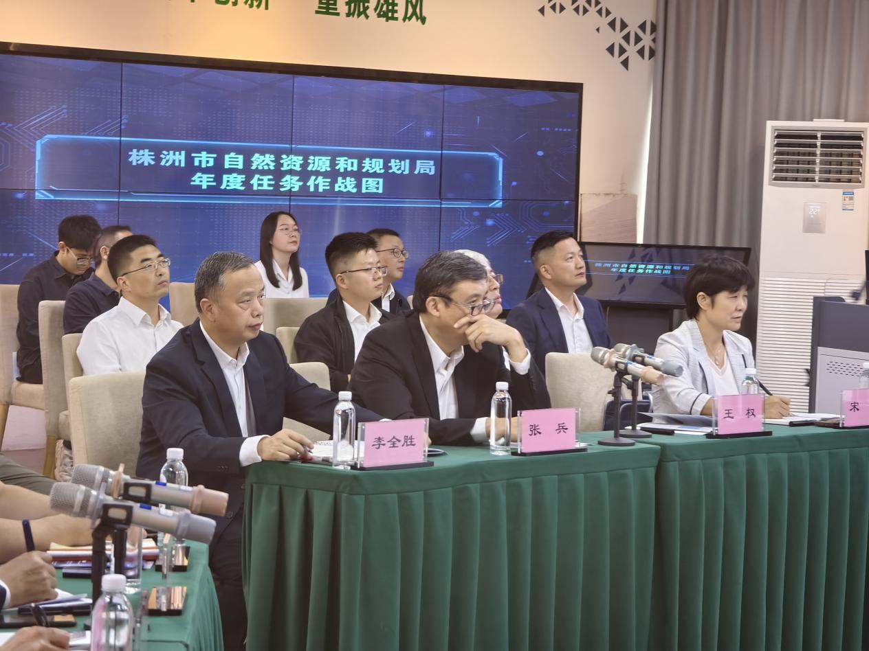 9月24日,自然资源部总规划师张兵、自然资源部国土卫星应用中心原主任王权,湖南省自然资源厅党组书记、厅长李全胜,党组成员、副厅长宋琤一行到株洲市自然资源和规划局,专题调研对株洲市时空数字基础底座建设工作。株洲市副市长刘飞勇、副秘书长段君平,深圳大学智慧城市研究院院士郭仁忠、教授王伟玺,株洲北斗时空信息研究院院长池天河、副院长刘巍、秘书长李涛,株洲市自然资源和规划局局长徐业伟、其他班子成员等共同参加调研。