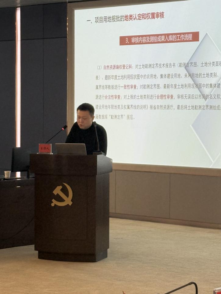 高健从地类认定与权属审核、地籍调查流程、政策依据与审查要点等方面,系统讲解了项目用地从报批到供地的确权登记工作,强调其作为用地合法性"守护者"的重要作用,确保每一宗地权属清晰、界址明确、面积准确、程序合法,为项目建设和市场交易夯实产权基础。