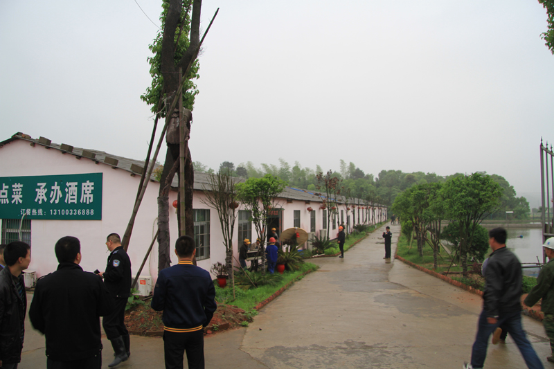 天元区群丰镇江璜社区的鸿燕农家乐,非法占用基本农田24亩,修造起平房2000多平方米,挖鱼塘3口,从事餐饮、棋牌、桌球、垂钓、宿营等休闲商业营运。市国土资源天元分局发现后,立即下达了停工通知书,还在区、镇政府的大力支持下,多次登门宣传相关法律法规和政策教育,劝说其自行拆除,但其一直不配合,反而于去年年底对外开张营业。4月25日,在天元区政府统一组织指挥下,天元分局积极参与,会同区拆违大队、群丰镇政府等依法对鸿燕农家乐予以拆除。之后,将恢复农田原貌。
