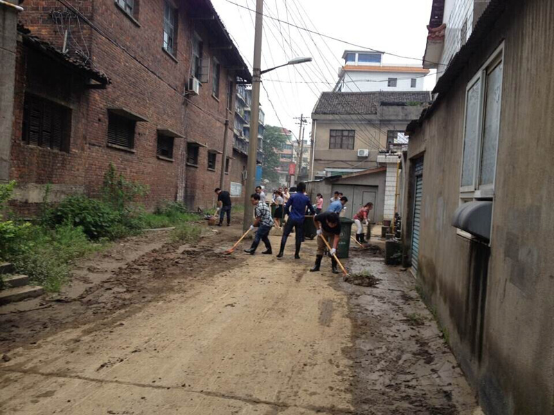 干部职工们你扫我铲、不嫌脏、不顾累,干劲十足,奋力将垃圾和淤泥清扫出去,还居民们一个干净整洁的居住环境,有效缓解了洪灾过后的环境污染,保障了居民的灾后的基本生活秩序。