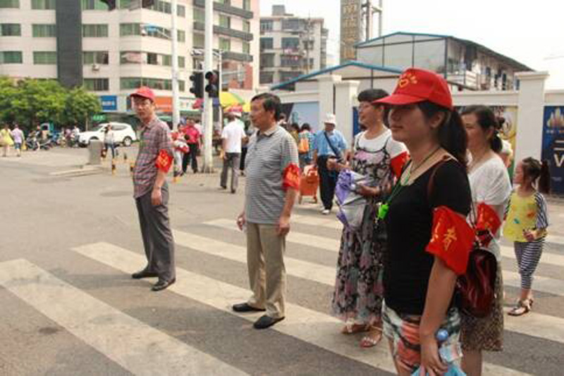 此次活动局长高度重视,倡导分局全体干部积极参与活动,原本要求5个小组共25人参与活动,但干部职工热情高涨,实际参加文明劝导志愿服务队的人数增至32人。活动当天,志愿者们头戴志愿者服务帽,身挂口哨,协助交警维护交通秩序,劝导纠正行人乱穿马路、闯红灯等不文明行为。活动过程中,尽管天气十分炎热,但是志愿者们对老弱残者或问路的行人都会提供热情的帮助,为他们解忧排难。一句句"您好,我们是文明交通劝导员,请您按照交通信号通行,谢谢您的配合”,深深地印在了每一位市民的心中,大家都以微笑来回报志愿者的服务。