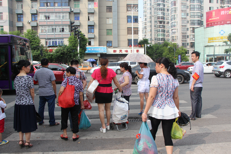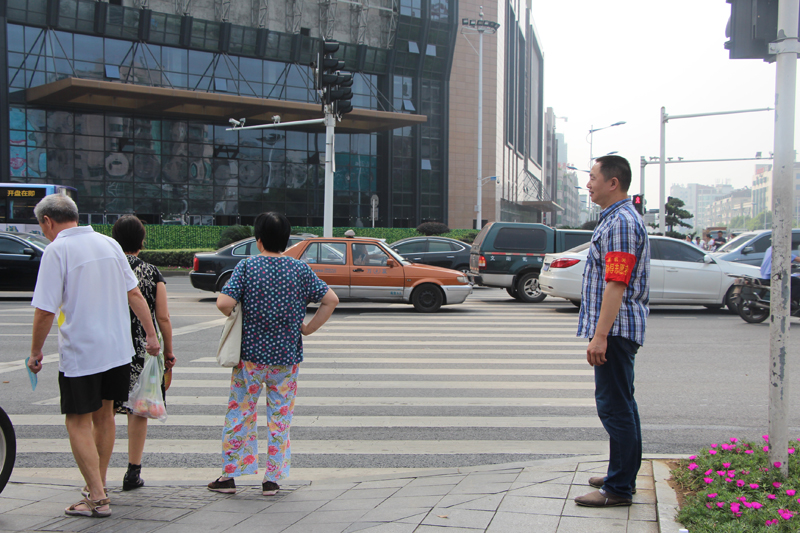8月2日上午,文明劝导志愿服务队分布在红旗广场北口至中南蔬菜市场交通口路段,协助维护人行横道的交通秩序,并向过往行人提供交通指引和咨询服务,为炎炎烈日下的市民出行贡献一份文明、增添一分平安。