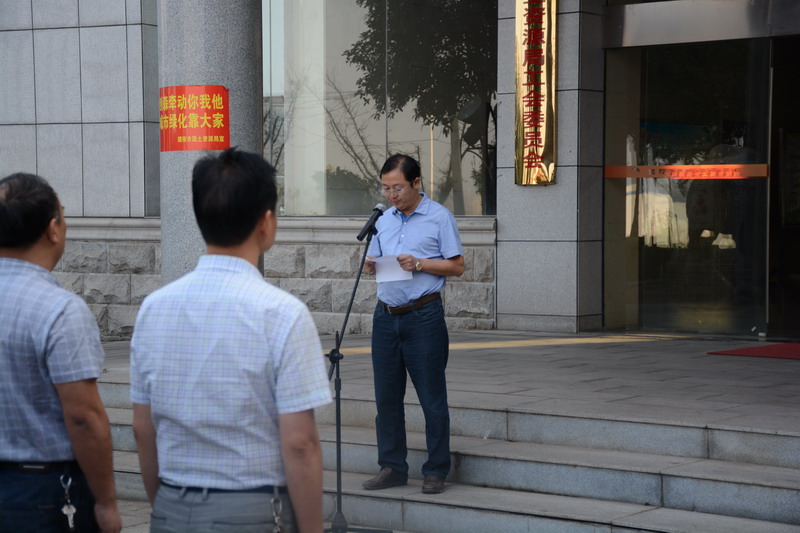 随后,局党组书记、局长陈佳作讲话。他强调,65年来,中华民族从崛起复兴到繁荣发展的辉煌历程,国土资源为各行各业的发展提供了强有力的资源保障。国土资源系统广大干部职工多年来的坚守与付出,就是献给伟大祖国的贺礼。今后,我们国土人要一如既往立足本职,努力践行群众路线,以只争朝夕、奋发有为的精神状态,狠抓各项工作落实,为早日实现“中国梦”做出新的更大的贡献。