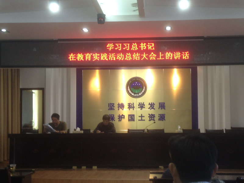 会上,政工人事股股长钟振成给大家原文传达学习习近平总书记在中央党的群众路线教育实践活动总结大会上的重要讲话精神内容。该局干部职工一致表示,将坚决按照中央部署,持续深入改进作风,以国土系统党的建设新成效推动国土资源管理工作持续发展。