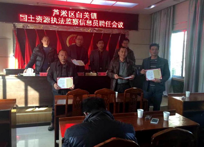 在聘任会上,组织信息员学习了《国土资源执法监察村级信息员制度》,执法监察大队长段新平就2014年度卫片执法检查工作做了通报,并对当前执法监察工作重点做了要求;分局长陈晖就如何发挥基层执法监察信息员作用做了强调,要求大家作基层国土部门的“千里眼”、“顺风耳”,发现违法用地早报告、早制止,成为服务群众的能手,矛盾调解的高手和耕地保护的帮手。市局执法监察支队副支队长戴斌参加白关乡信息员聘任会议并作了讲话。(芦淞分局)