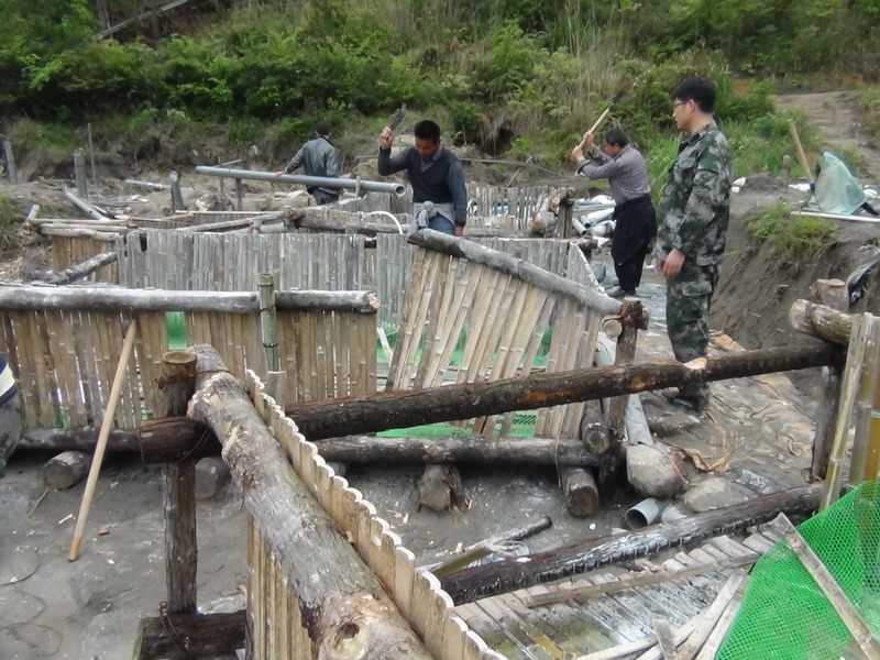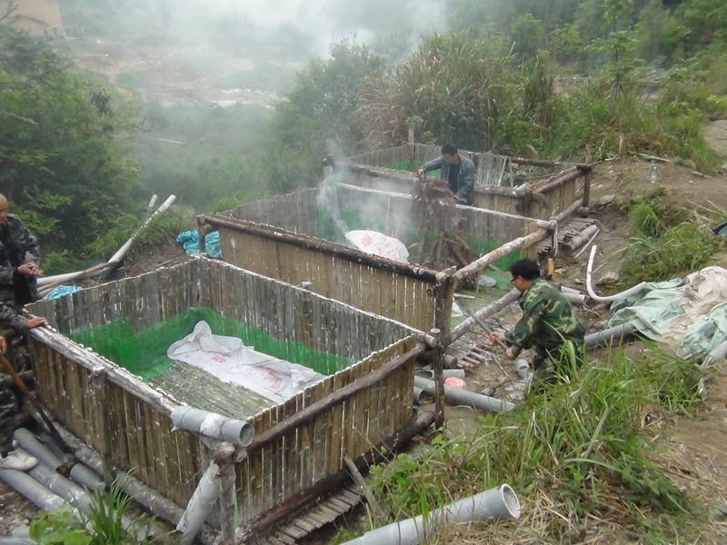 4月23日,炎陵县中村乡龙潭村下光阳组的一处山坳里,县国土资源局联合中村乡政府组织30多名工作人员在对某非法稀土矿点进行依法取缔。工作人员对其管道以及水池等进行摧毁,共计摧毁竹编矿池6个,砍断水管300余米,并将摧毁物料全部进行焚烧。