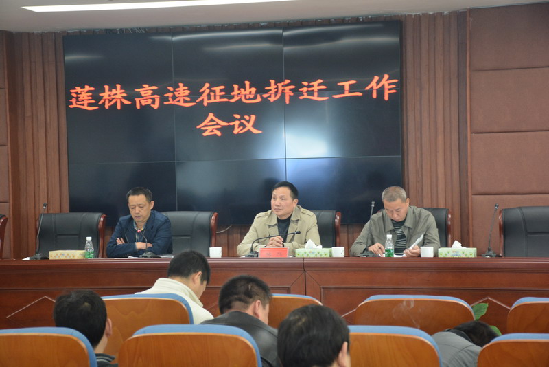近日,莲株高速醴陵段征地拆迁工作会议在市国土资源局4楼大会议室召开,市政协副主席易磊出席会议。会议强调,相关部门要心往一处想、劲往一处使,全力做好相关工作,确保莲株高速醴陵段征地拆迁工作顺利高效推进,要严格按照征地拆迁工作节点计划,在一个月内(12月15日前)完成征地899亩,拆迁房屋152栋的征地拆迁任务。