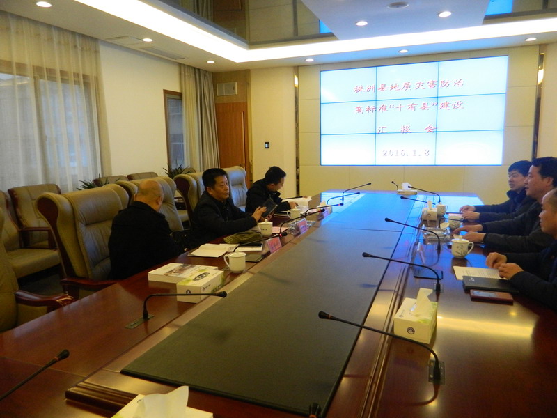 2016年1月8日,省国土资源厅地环处副处长梁祖海带队,对我县地质灾害防治高标准“十有县”建设工作开展考核验收。