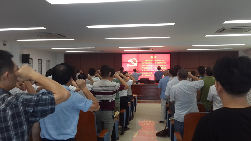 会上,局机关党委书记瞿海华带领大家重温入党誓词,现场庄严,宣誓铿锵有力。局党组成员、副局长吴建民宣读表彰决定,表彰2个先进党支部、19名优秀共产党员、1名优秀党务工作者。局党组书记、局长陈佳作重要讲话,回顾中国共产党成立95周年以来走过的辉煌历程及半年来我局在党的建设和国土资源管理方面取得显著成绩。随后,陈佳局长以“树立规矩意识,严明政治方向”为主题给广大党员干部上了一堂生动形象的专题党课。