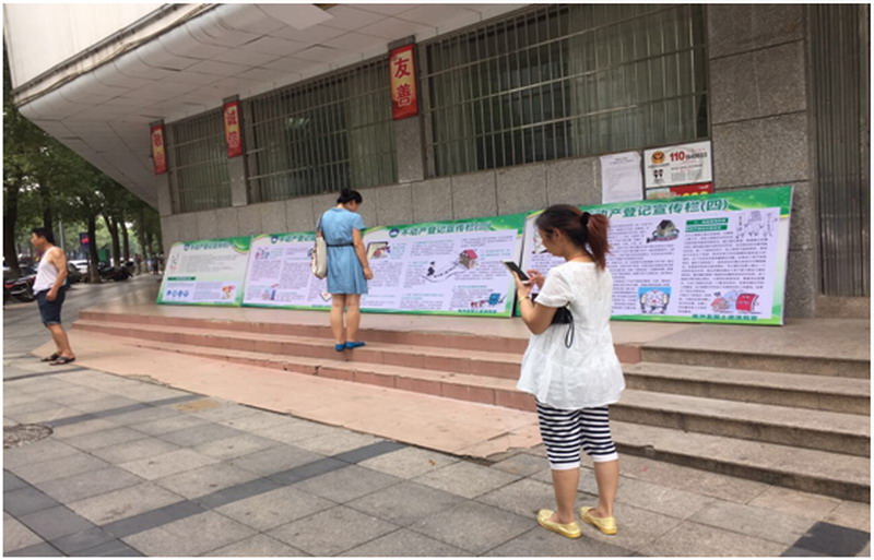 8月22日,该局工作人员通过展板展示、悬挂横幅、LED电子屏等形式向群众介绍国家实施不动产统一登记的意义、内容以及不动产登记办事流程。