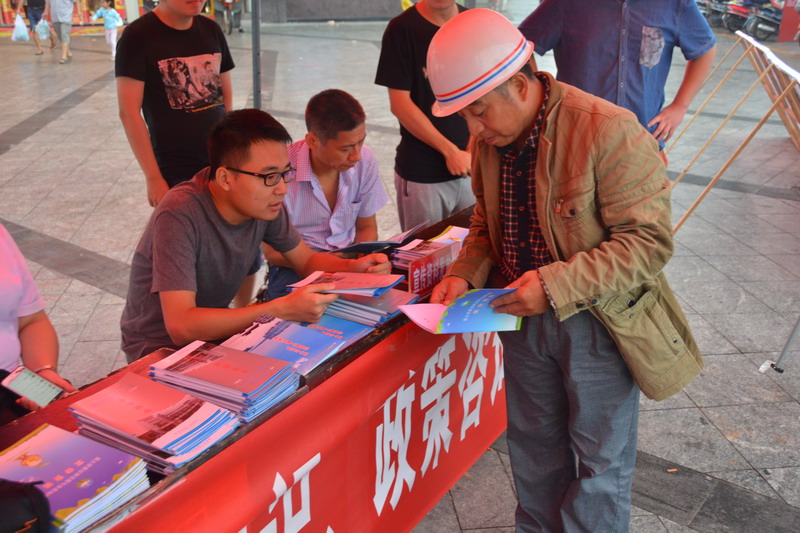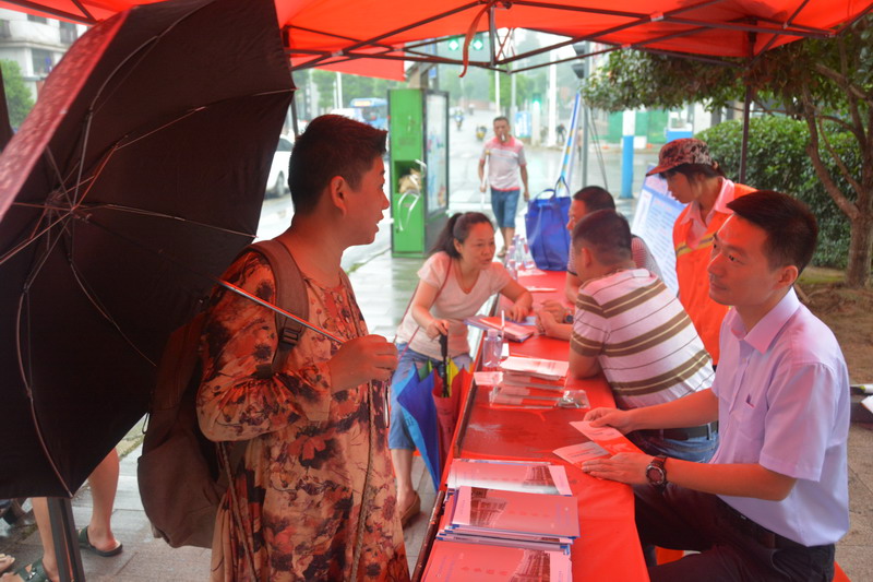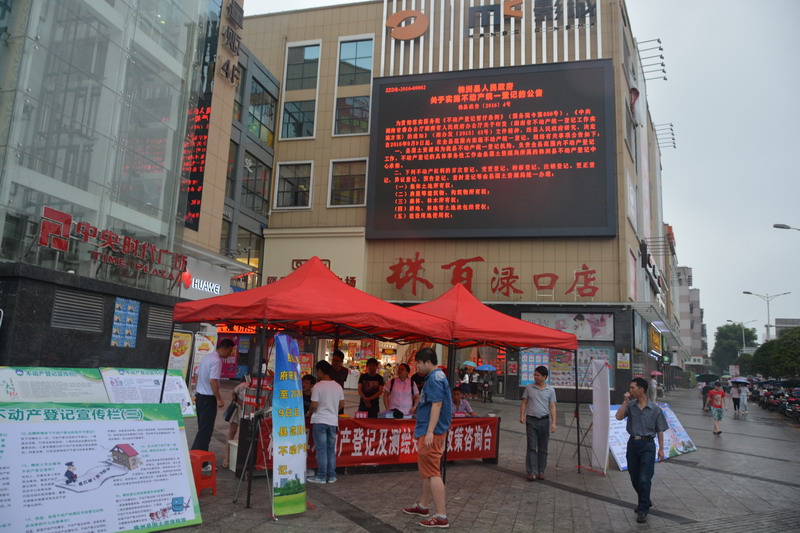 为了确保9月9日该县首证颁发活动的顺利开展和不动产登记工作的顺利推进,8月27日,株洲县国土资源局的工作人员利用周末时间走上街开展不动产宣传活动。