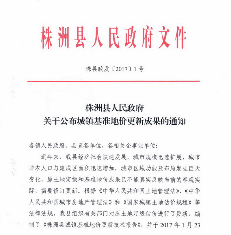 本城镇基准地价成果自2017年3月1日起正式实施。《株洲县人民政府关于公布城镇基准地价更新成果的通知》(株县政发〔2012〕21号)同时废止。