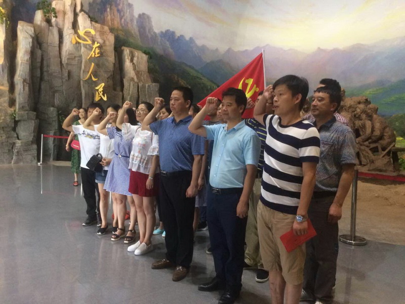 “我志愿加入中国共产党,拥护党的纲领,遵守党的章程……”,7月7日上午,在浏阳市中和镇胡耀邦同志纪念馆内,醴陵市国土资源局20多名党员干部庄严地举起右手,面对鲜红党旗,重温入党誓词。这是中共醴陵市国土资源局机关委员会第一支部开展党员活动的一幕。