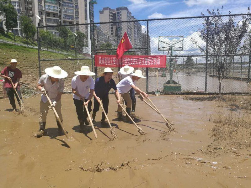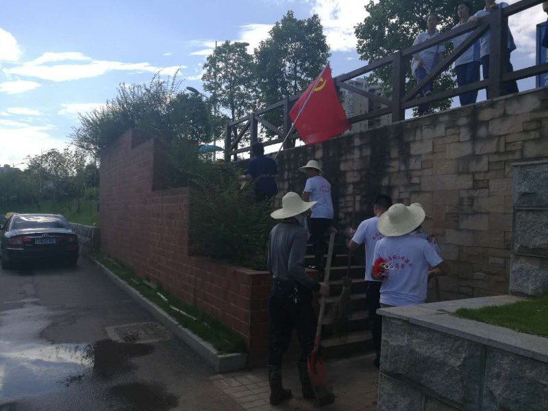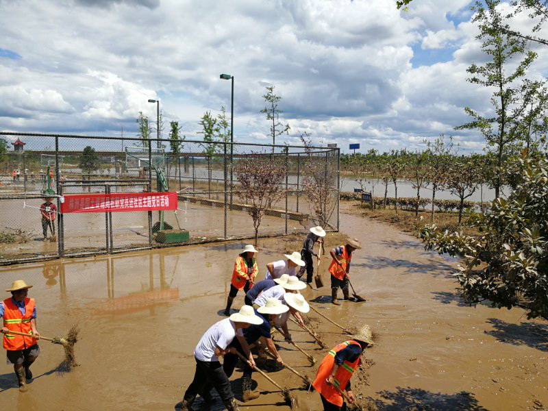 清扫活动从上午9:00开始,下午4:00结束,中午也没休息。炎炎烈日下,志愿者们头戴草帽,脚穿雨鞋,手拿铁铲、笤帚,沿河边仔细清扫。他们齐心协力,铲洗淤泥,清除垃圾,拨开枯枝,不嫌脏,不怕臭,党员干部身先士卒,女同志也是巾帼不让须眉,台阶上,篮球场,每一处旮旯、每一个角落,都不轻易放过,直到清扫干净为止。