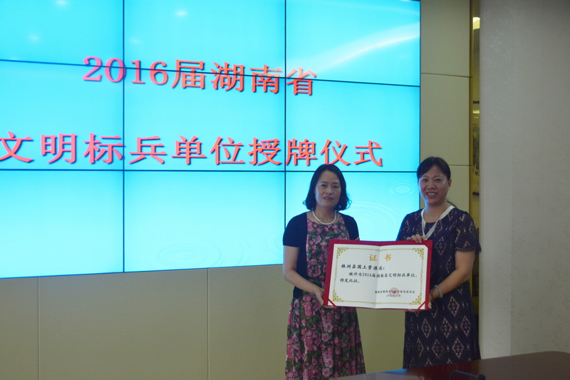 7月10日,市委宣传部副部长、文明办主任欧阳元初到株洲县局授“2016届湖南省文明标兵单位”奖牌,县委常委、宣传部部长刘美和陪同指导,并颁发荣誉证书。