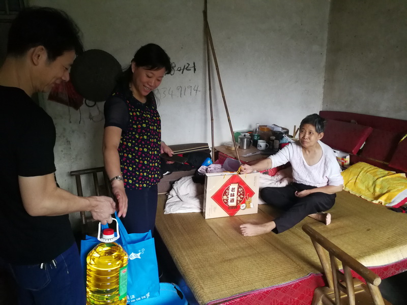 蔡凤美一行来到贫困户家中,与贫困群众亲切交谈,询问他们生产生活方面存在的困难,清算家庭收入状况,商讨脱贫致富的办法等,鼓励他们坚定脱贫信心,争取早日脱贫致富。并在国庆、中秋“双节”到来之际,向他们送去粮油、月饼、衣服洗涤剂等慰问物资和节日祝福,让他们深深感受到党和政府的温暖与关爱。