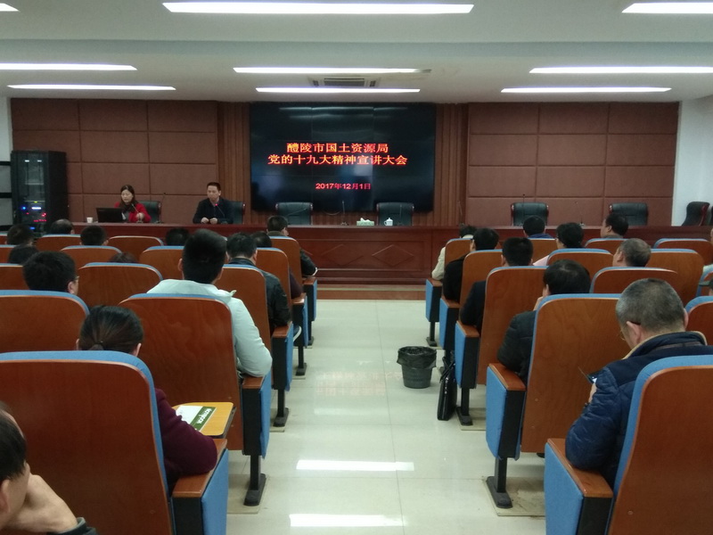 12月1日下午,醴陵市委宣讲队来市国土资源局宣讲党的十九大精神。宣讲队成员、市监察局副局长黄向阳作宣讲报告。局党组书记、局长温国战主持会议,党员干部150余人参会。