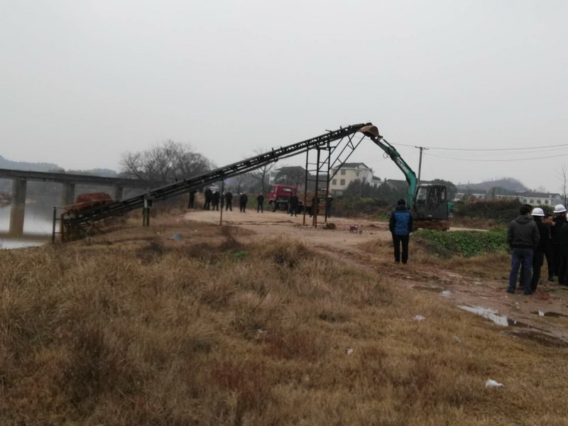 2018年1月8日,县多部门联合执法,重拳出击,在全镇范围内展开了打击非法采砂场专项行动。 上午,由县政府牵头,联合县国土、环保、安监、公安、拆违大队、皇图岭政府等多个部门单位,抽调了50余名精英骨干力量,在镇长刘龙亮的率领下,先后赶赴笔和村、富厚村等4个非法采砂场现场,对砂场工棚进行了拆除,对采砂设备进行就地拆解。
