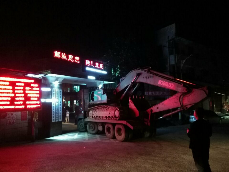 当天晚上11点,巡查人员发现偷采区域内有挖机作业后,立即现场制止,并向相关单位报告要求增援。市国土资源局、白兔潭镇政府20多名执法人员迅速到位,参与打违行动。在执法中,嫌疑人林某极度不配合,叫来老人、妇女等10余位家属阻挠执法。经过几个小时的现场调查取证,及对当事人动之以情,晓之以理的政策讲解,凌晨4点林某主动叫来了拖车,把违法开采设备挖机拖运到白兔潭镇人民政府。