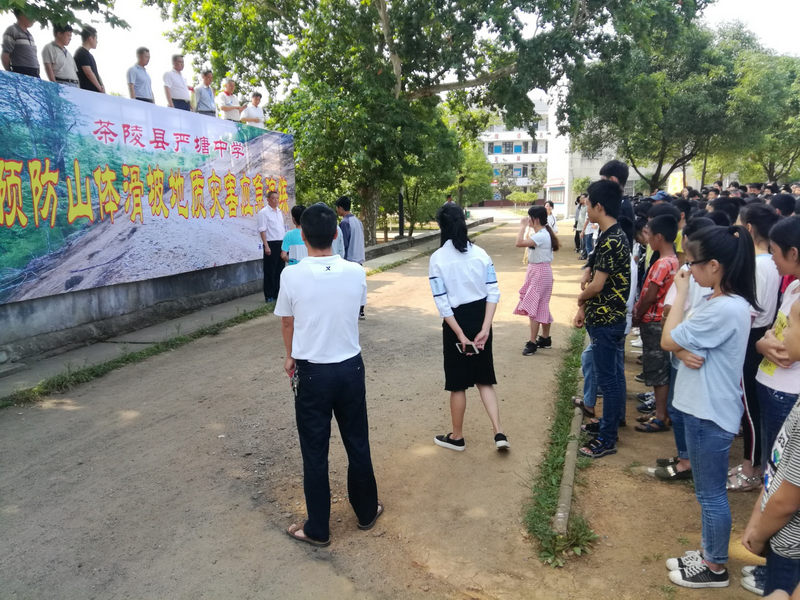5月24日,茶陵县国土资源局联合茶陵县教育局在严塘镇严塘中学开展突发地质灾害应急避险演练。