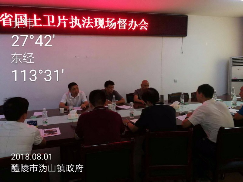8月1日,省国土资源厅、株洲市国土资源局组成督察组来醴现场督查非法开采督办案件,陈佳副市长以及市国土、林业、环保、公安、电力、沩山镇等单位负责人参加现场督办会。
