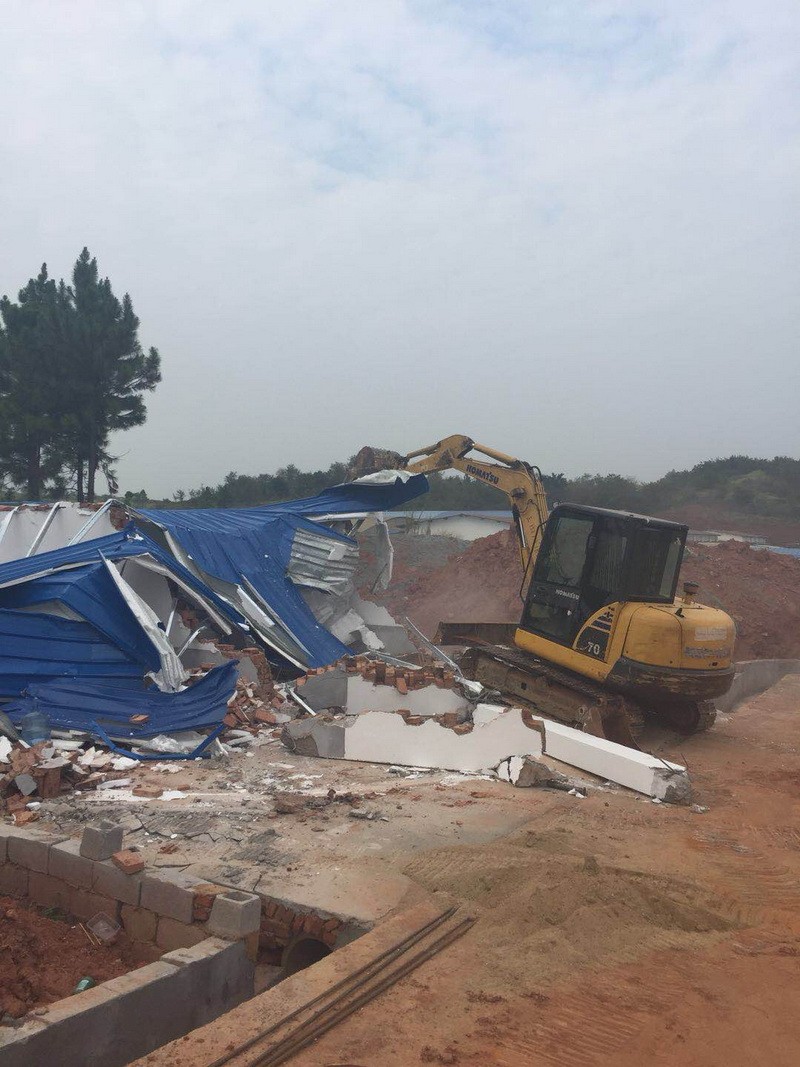 为及时遏制这种违法用地现象蔓延,经报县人民政府同意,2018年8月24日下午3点,县国土资源局、县控违拆违大队、宁家坪政府对不听制止继续违法施工的华新烟花厂进行联合执法,对华新烟花厂非法占用土地上的厂房进行强制拆除。