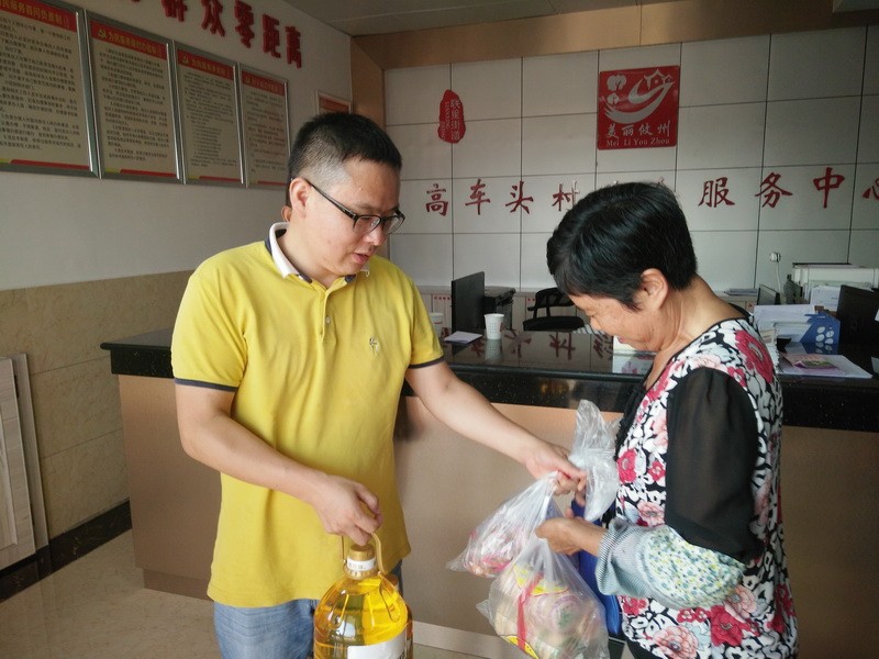 为扎实推进精准扶贫工作,在国庆、中秋节即将来临之际,为了让结对帮扶的贫困户度过一个喜庆、温馨的节日,9月19日,县国土资源局结对帮扶责任人等一行人来到高车头村,为34户贫困户分别送上大米、油等慰问物资,将党和政府的关怀和温暖送到他们身边,并致以节日慰问和美好祝愿。在走访慰问中,帮扶责任人每到一户都与贫困户进行亲切的交谈,详细了解他们的最近的生活状况以及今年的收入情况等,并送上节日慰问品。在贫困户家中,扶贫专干与帮扶对象及其家人促膝交谈、倾听他们的心声,详细了解贫困户家庭存在的困难,积极为贫困家庭宣讲精准扶贫相关政策,出谋划策,增强贫困户脱贫致富的信心。