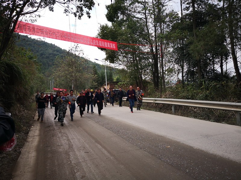 本次应急演练模拟背景为:仙石村地质灾害滑坡点因持续降雨和局部暴雨,山体出现滑坡险情,将危及仙石村三口坝组群众的生命财产安全。监测人员发现危险后,立即发出预警信号。随着预警信号的响起,指挥部立即启动应急预案,各组救援队迅速到位,展开抢险救援。