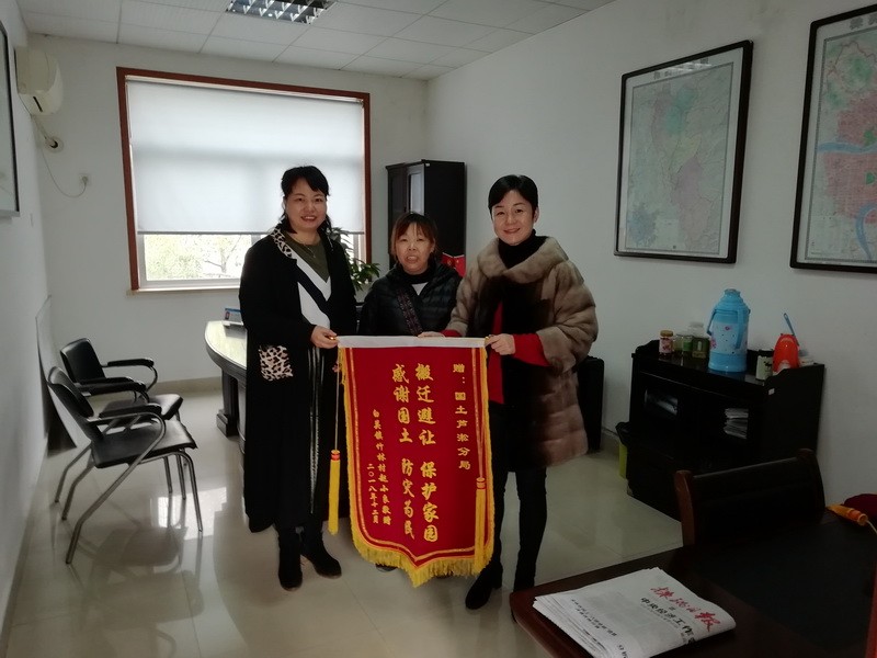 12月24日上午,赵小良妻子怀着感激将锦旗送到国土芦淞分局蒋燕局长的手中。“感谢党、感谢政府、感谢国土局对我的帮助”赵小良妻子激动地说道。