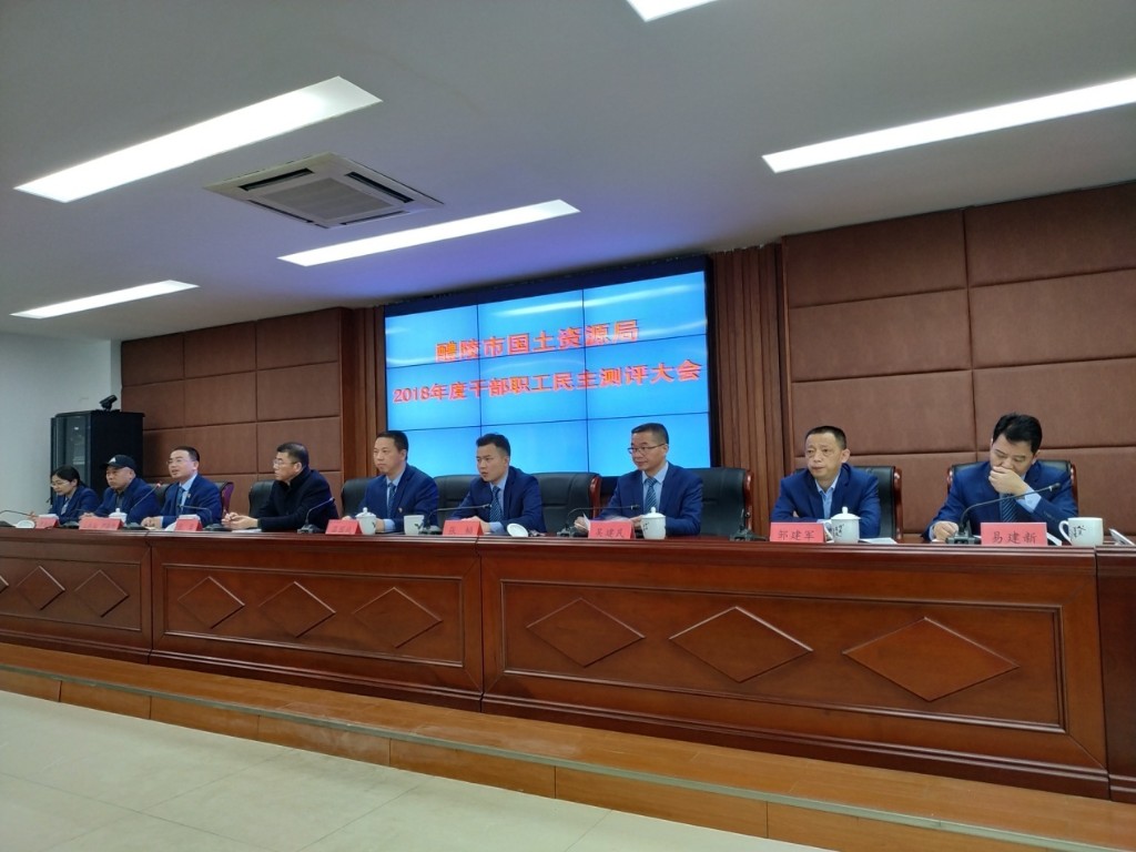 1月28日,醴陵市国土资源局召开2018年度干部职工民主测评大会。局党组书记、局长温国战参加会议并讲话,党组成员、副局长尹海坤主持,全局240余名干部职工参会。