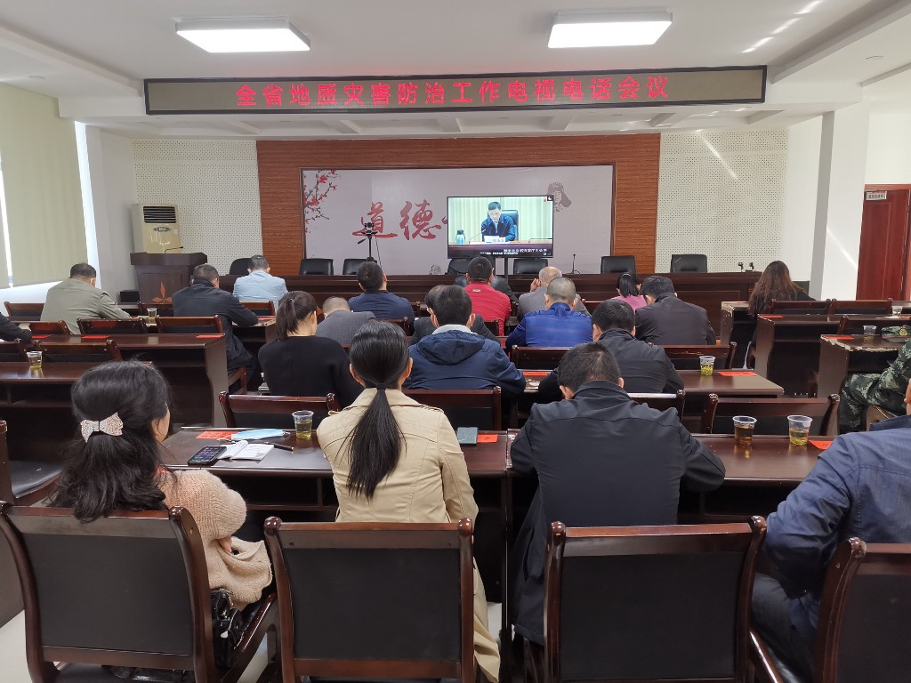 炎陵县组织县直相关单位负责人及各乡镇长,自然资源局班子成员及业务股室参加全省地质灾害防治工作电视电话会