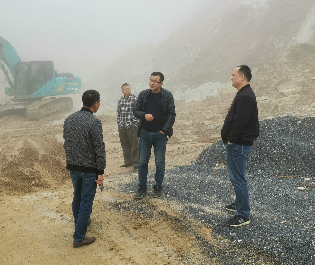 炎陵县自然资源局分管领导刘锋(中)督查项目施工