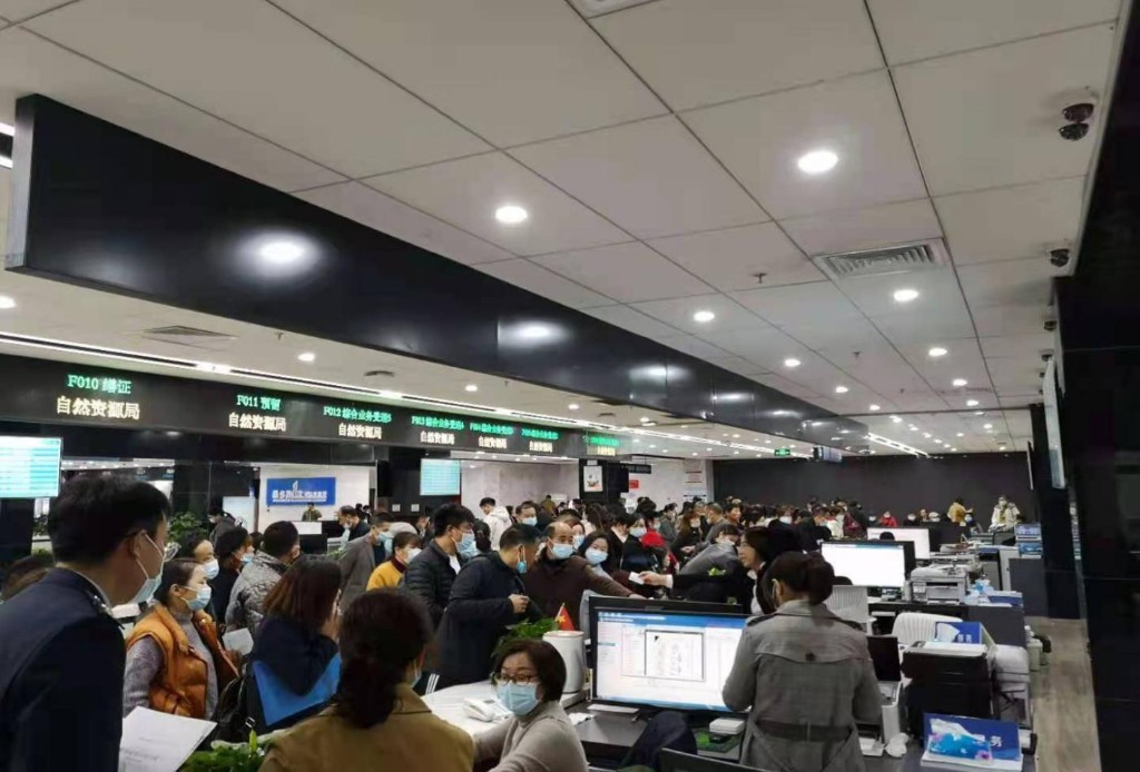 11月23日,2020年湖南醴陵房地产博览会后第一天,市民中心不动产登记大厅迎来了人流的爆发式增长,当日业务量达550余宗。为有效预防和稳妥处置房博会后办证高峰突发情况,醴陵市不动产登记大厅快速反应,及时启动应急预案,全力以赴、多措并举满足群众办证需求。