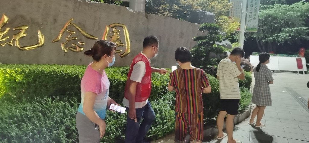在第一轮核酸检测工作中区局派出3名志愿者进驻流芳园检测点的基础上,在仙庾镇徐家塘村和蝶屏村检测点,区局又新增派的5名志愿者全程参与第二轮核酸检测,核对健康码和行程码、维持现场待检村民秩序、录入试管编号和监测人员信息,每位志愿者根据分工各司其职、有条不紊,极大地加快了现场检测的速度,帮助上述两个村完成了2500余绿码人员和百余名黄码人员的第二轮核酸检测。