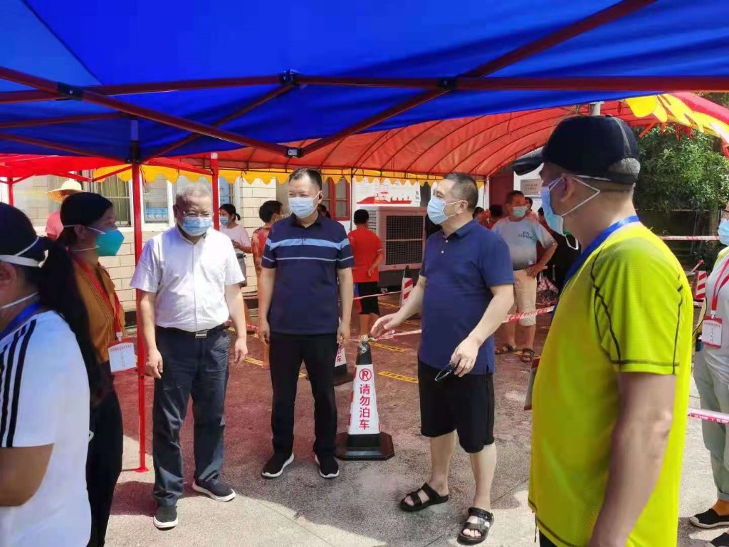 8月6日,石峰区自然资源局班子成员率先垂范,带领工作队员下沉到九塘村协助完成了第二轮核酸检测,慰问值班值守工作人员,并给村里送去了防疫物资。