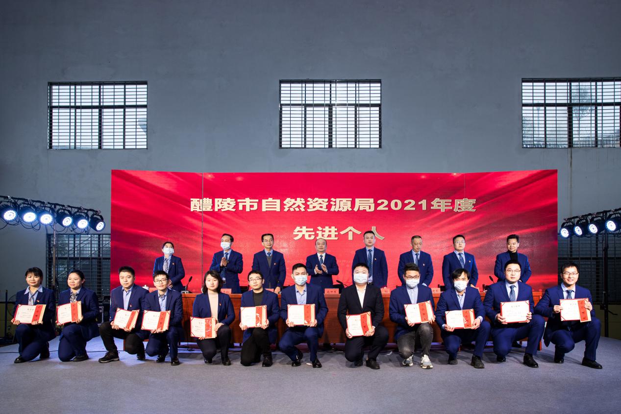 高开军代表局党组总结2021年工作。他表示,刚刚过去的2021年意义非凡。我们亲历了建党百年华诞,开启了"十四五"全新篇章,踏上了全面建设社会主义现代化的历史征程。全局上下团结一致、苦干实干,到处留下奋斗的身影,到处开辟奋斗的战场,在要素保障的第一线、在规划编制的第一线、在耕地保护的第一线、在执法监察的第一线、在信访维稳的第一线创造性开展工作,有力支撑全市发展大局。他指出,高质量发展的道路上没有奇迹,只有足迹。做好自然资源工作,对于助力株醴融城、迈进千亿时代具有重大意义。全市自然资源系统要突出一个"干"字,讲担当、讲责任,讲激情、讲奋斗,保持上进态度,拒绝"内卷""躺平",永葆"闯"的精神、"创"的劲头,做到苦干、实干、巧干,认真细致加快推动各项工作落实落地,为我市迈入千亿时代、为建设现代化新醴陵而不懈奋斗。