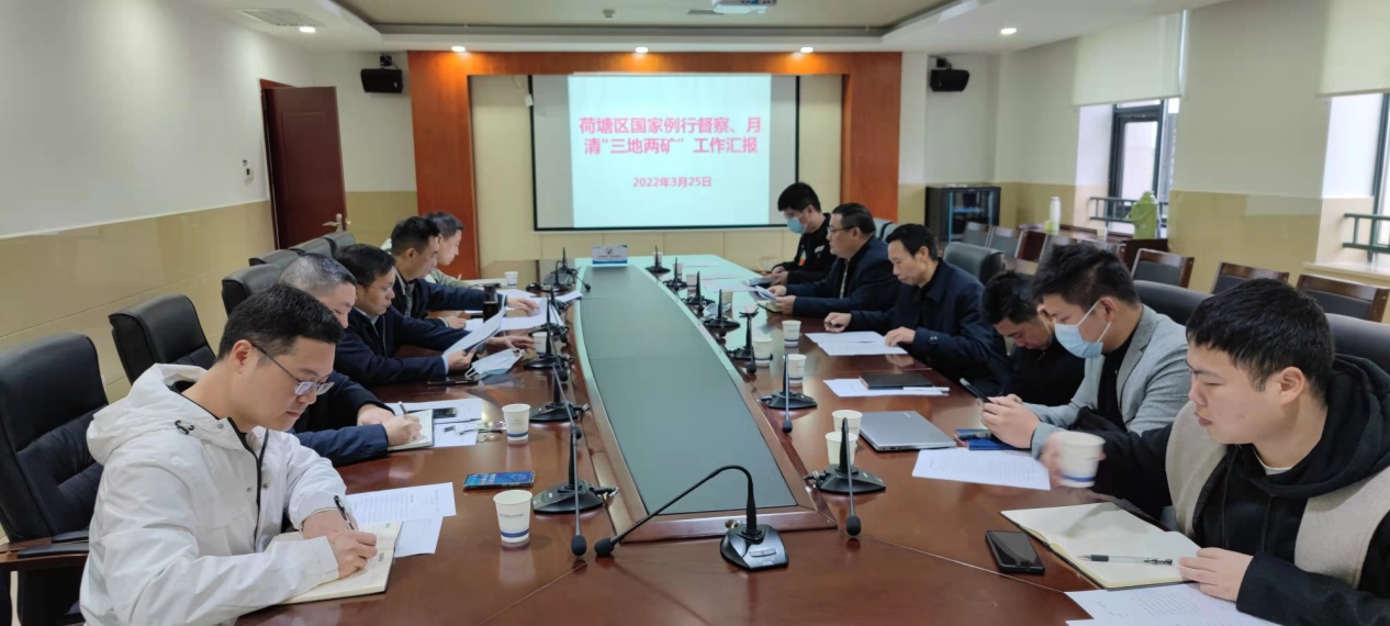 会上,督察组熊昕通报了荷塘区国家、省级例行督察和月清"三地两矿"相关情况,李荣向督察组报告了荷塘区国家、省级例行督察反馈问题整改情况及违法用地、闲置土地、违法占用耕地图斑的整改情况,并对下一步工作做了安排。
