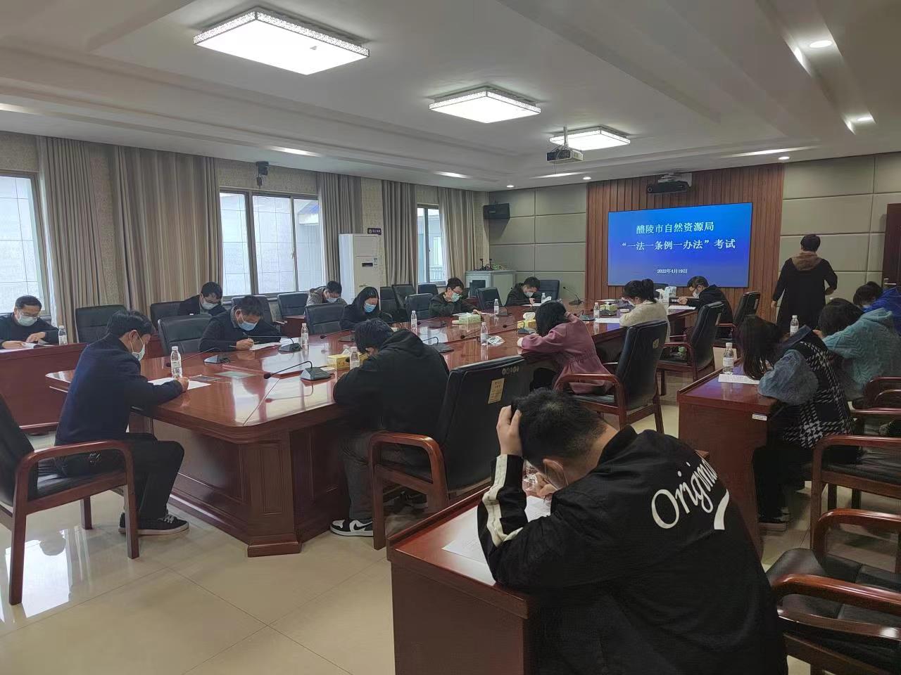 为认真贯彻省、市自然资源部门"一法一条例一办法"方案精神,检验干部职工对最新土地管理法规知识的掌握程度,提高工作本领,强化学习意识。4月19日上午,醴陵市自然资源局组织30余名基层干部开展"一法一条例一办法"知识考试。
