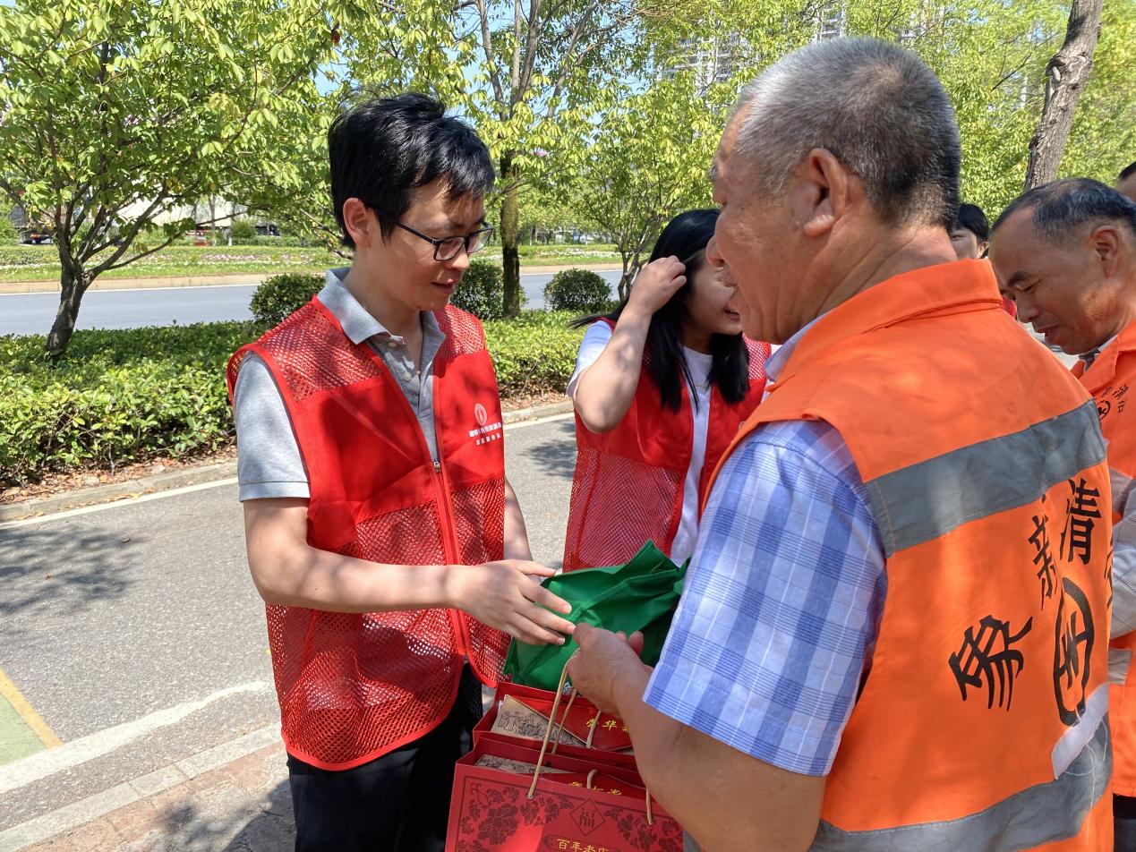 活动当天,志愿者带着节日礼品和防暑药包,慰问在渌江大道一线工作的环卫工人,对他们的辛勤工作表示深深感谢,也叮嘱他们在炎热天气下工作要注意好防暑、保重好身体。