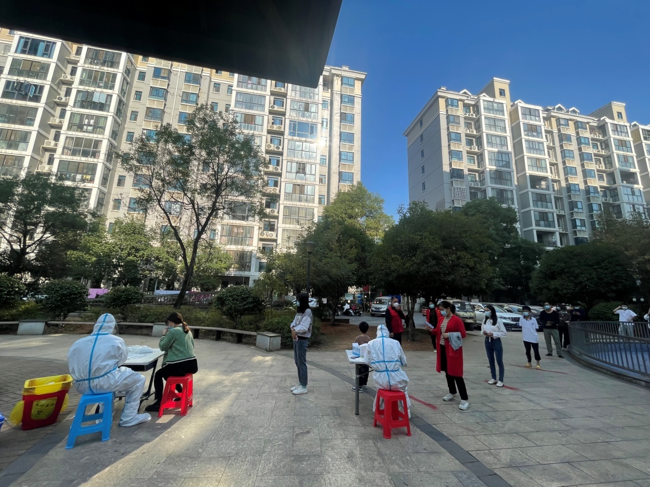 当好"协管员",坚守安全耐心。"您好,请大家正确佩戴口罩,保持两米线,完成检测后立即离开"。每个检测点上都有下沉干部的身影,他们身穿红马甲、佩戴党徽袖章,全天候不间断提醒有序排队、保持安全距离,主动帮助群众采集核检信息,为行动不便的老人及特殊群体提供上门服务,以实际行动在疫情防控一线凝聚起"红色"力量。
